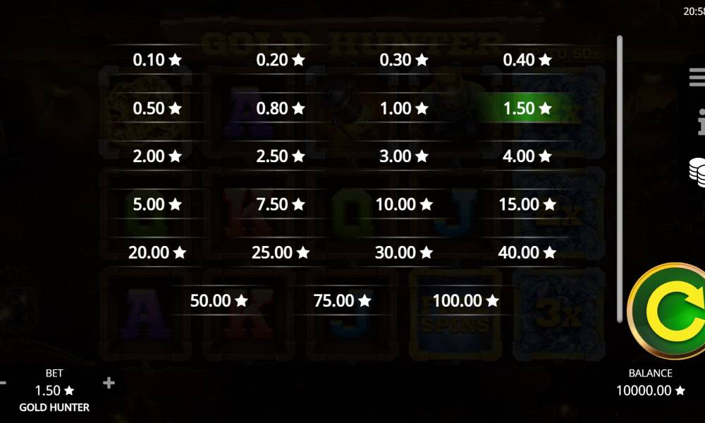Максимальная ставка в слоте Gold Hunter равна $20.