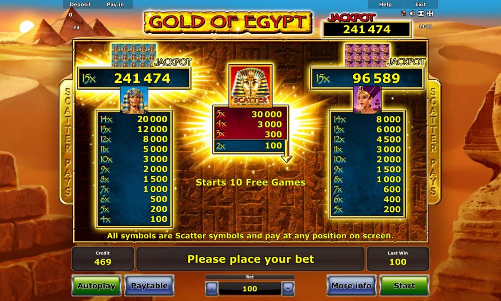 золотая тематика до сих пор будоражит многих, особенно если это касается золото Египта, автомат предлагает накопительные джекпоты, риск-игру по равным шансам и фри-спины с дополнительными функциями.