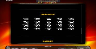 Для получения выплаты необходимо составить комбинацию из одинаковых символов по любой из 20 линий. Учитываются только те комбинации, которые начинаются с первого барабана и идут слева направо.