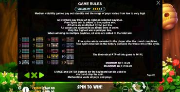В видеослоте «Мёд, мёд, мёд» пять барабанов и двадцать линий. На экране пятнадцать позиций для иконок. Это наиболее распространённый формат для игр данного типа.