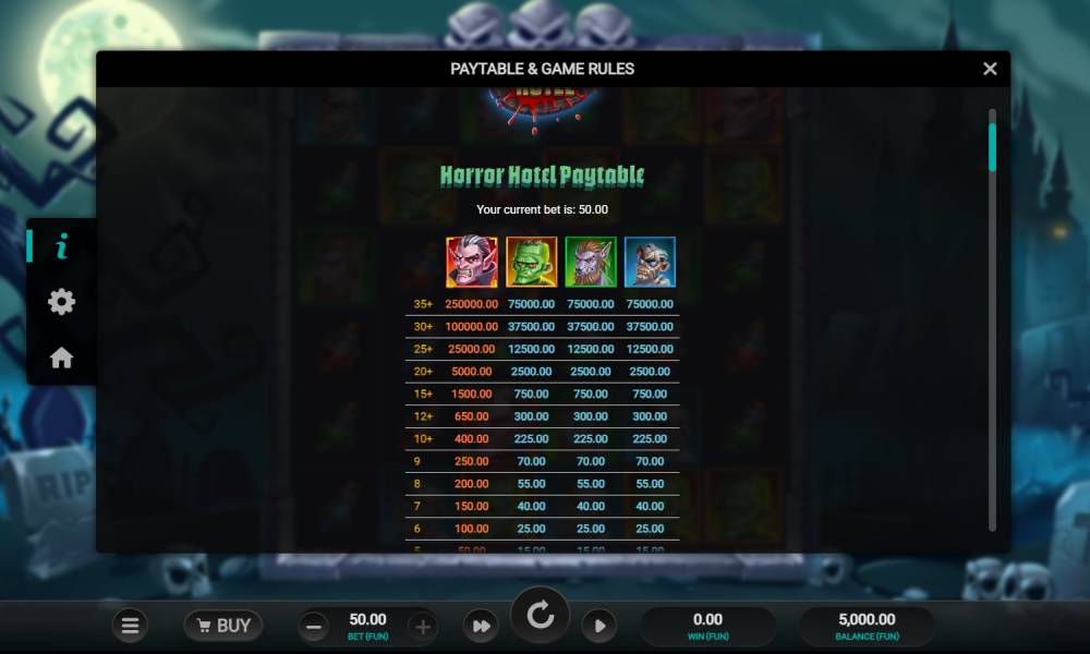 Заключение редакции о Horror Hotel: слот хороший визуально и интересный. Несмотря на маленькое количество бонусных функций (по сути часто работает только 1: Mystery Feature), каскады и большое поле делают игру увлекательной.