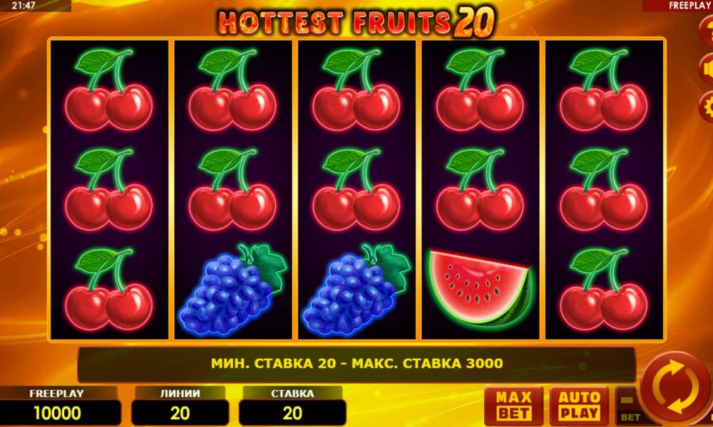 Фриспины в игре Hottest Fruits 20 от провайдера Amatic Industries не предусмотрены.