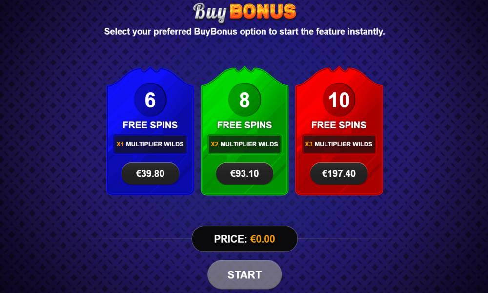 Buy Bonus. Функция для покупки фриспинов. Есть 3 пакета: 2 стандартных, которые можно выиграть в простых вращениях (6 ФС без дополнительных множителей Wild и 8 ФС с Multiplier Wild x2), и 1 дополнительный, который можно только купить (10 ФС с Multiplier Wild x3).
