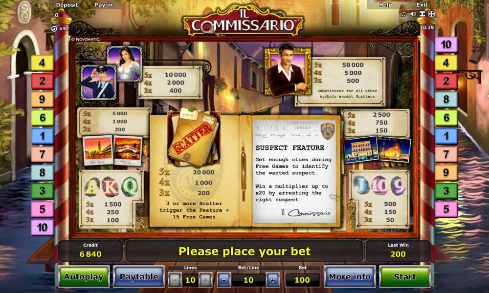 Запускайте игровой автомат Il Commissario бесплатно в казино с лицензионным софтом Novomatic. Например, в StarGames.