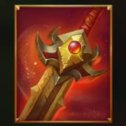 На барабанах слота изображены трое вышеупомянутых героев, меч, посох, арбалет и четыре монет. Иконки стекированные. Символы одного типа могут занимать колонки целиком.