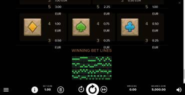 Для получения выплаты необходимо составить комбинацию из одинаковых символов по любой игровой линии. Учитываются только те комбинации, которые идут слева направо.