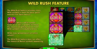 • Символ Wild. Традиционно заменяет другие символы. Выпадает в колонках 2, 3, 4 и 5. Является триггером функции Wild Rush, создавая вертикальный ряд из нескольких символов Вайлд и способствуя появлению MegaJakpots.