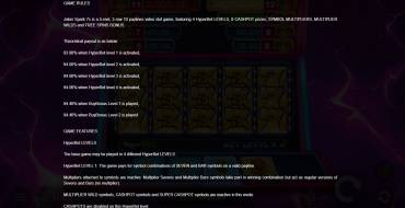РТП слота зависит от региона игрока, а также от того, какой уровень HyperBet выбран. 4-ый уровень имеет РТП на 0.16% выше, чем 1-ый. Еще больший процент возврата установлен для покупных фриспинов.