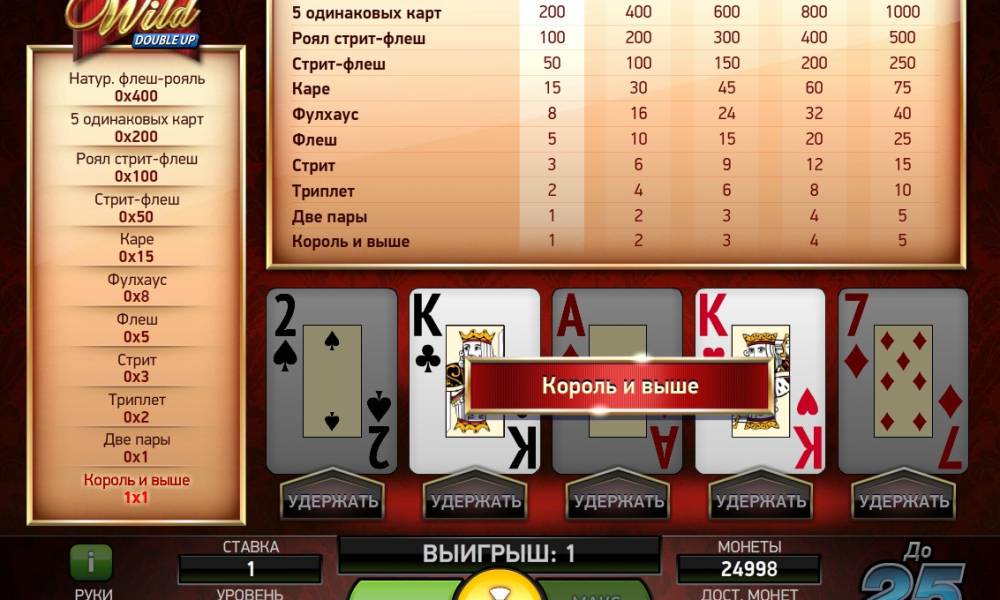 Мы не будем подробно описывать интерфейс видео-покера, потому что производитель полностью перевел его на русский язык.