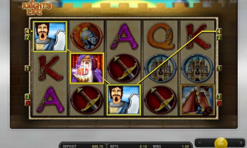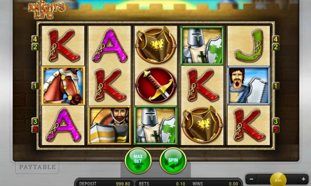 На барабанах слот-машины Knight’s Life можно увидеть рыцарей, мечи, шлемы, доспехи, замки и номиналы игральных карт от валета до туза.