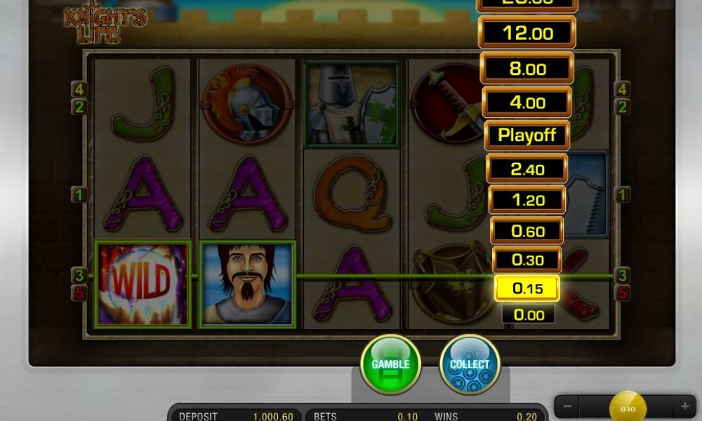 «Жизнь рыцаря» - 5-барабанный видео-слот с пятью активными линиями, количество которых менять не разрешается. Ставка на каждую позицию варьируется пользователем в диапазоне от пяти центов до десяти евро. Таким образом, играть на игровом автомате можно, поставив на раунд от двадцати пяти центов до пятидесяти евро.