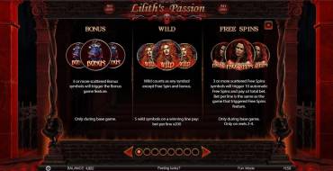 Демо-версия игрового автомата Lilith's Passion доступна для игры без регистрации на этой странице. Эта бесплатная версия игрового автомата дает пользователям возможность попробовать игру и убедиться, что ее игровая механика им подходит.