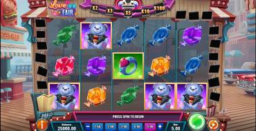 В обычном игровом режиме Love is in the Fair довольно классические правила, но бонусы вносят некоторое разнообразие в геймплей. Поле с барабанами стандартное, 5х3. Во вращениях принимает участие 9 рядовых и 2 специальных символа. Комбинации учитываются слева направо, по 20 фиксированным линиям. Для получения приза из таблицы выплат необходимо минимум три одинаковых знака подряд. Максимальный выигрыш составляет х10000 от ставки текущего раунда. Волатильность онлайн слота высокая и это основной его недостаток. Диапазон ставок составляет от 0.1 до 100 у.е., но данное значение может быть изменено самим казино.