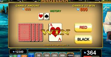Видео-слот «Магеллан» имеет пять барабанов с разнообразными картинками, необходимыми для составления оплачиваемых последовательностей. Играть на аппарате можно по одной, десяти, двадцати, тридцати или пятидесяти активным полосам, сделав на них одинаковые ставки. На каждую линию принимается одна, две, пять, десять или двадцать чипов. Какой может быть стоимость фишек, уточняйте непосредственно в интернет-казино, потому что лимиты определяются правилами заведения. При неподвижных барабанах вы увидите на экране сразу двадцать картинок (5х4). В Magellan есть простые картинки, джокеры, скаттеры, фри-спины, накопительные джекпоты и раунд игры на удвоение выплаты. Стандартные изображения составляют выигрышные цепочки только на задействованных полосах. Непрерывные последовательности одинаковых картинок должны начинаться с первого барабана. Для расчета выплаты в каждом случае ставка по линии умножается на коэффициент от х5 до х1000, предусмотренный для сложившейся комбинации. В одном раунде допускаются многочисленные выигрыши, но с каждой полосы он начисляется лишь за наиболее ценный вариант. Получив выплату любого размера, клиент может начать игру по равным шансам. Здесь нужно угадывать цвет карты. Правильный ответ удваивает сумму, а ошибка означает ее проигрыш. Можно играть несколько раз подряд, но есть максимальный лимит выплаты.