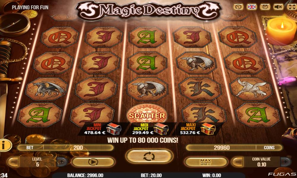 В слоте Magic Destiny от провайдера Fugaso разыгрывается сразу три прогрессивных джекпота: Mini, Midi и Maxi.