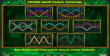 Для получения выплаты необходимо собрать комбинацию из одинаковых символов по любой из активных линий. Учитываются только комбинации слева направо, начиная с первого барабана.