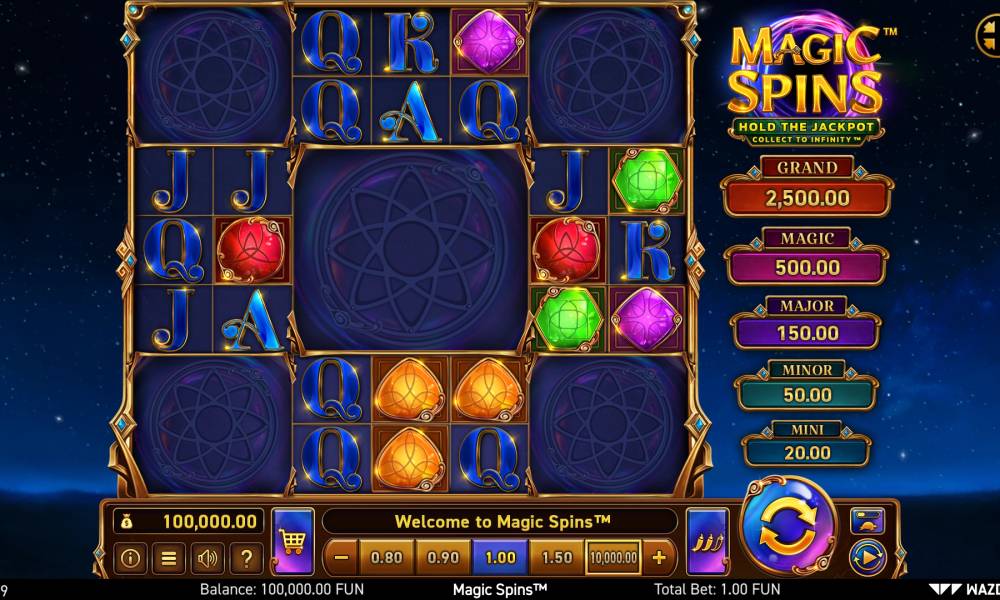 Игровой автомат Magic Spins от провайдера Wazdan посвящен мистической тематике. Если вам улыбнется удача, то в этом слоте вы сможете выиграть крупные призы, вплоть до 2500 ставок.