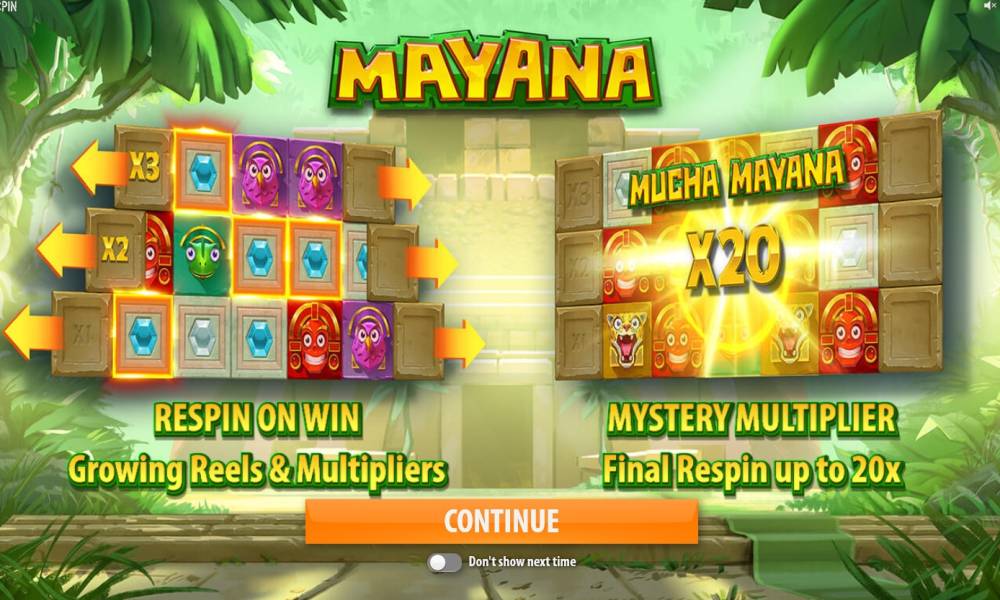 Компания Quickspin продолжает удивлять нас оригинальными возможностями новых игровых автоматов. Знаменитый разработчик софта представил уникальную модель Mayana, посвященную древнему народу майя. Она отличается изменяемым количеством барабаном, необычной системой множителей, частыми респинами и другими нестандартными особенностями.