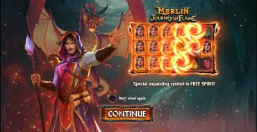В слоте Merlin: Journey of Flame slot игровое поле стандартных размеров 5х3. Оно расширяется в фриспинах на один барабан и становится 6х3. Учет символов проводится слева направо от трех одинаковых, по 10 фиксированным линиям. Доступный игроку диапазон ставок от 0.1 до 100. Во вращениях разыгрывается 9 обычных 1 специальный знак. Максимальный выигрыш составляет х7500 от ставки в текущем раунде, что неплохо даже для высокой волатильности. Бонусы во время обычного игрового режима недоступны.