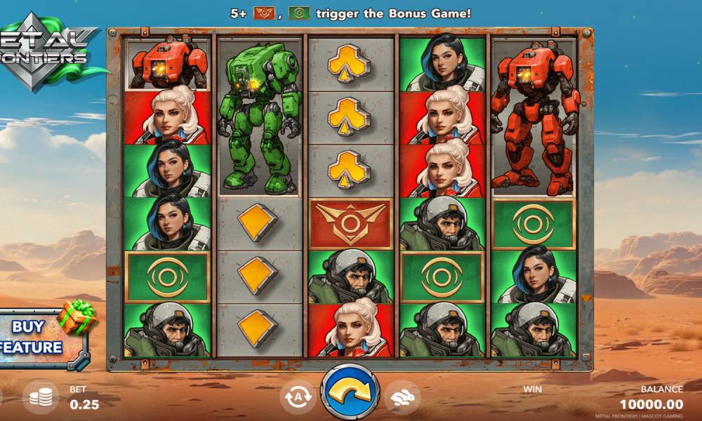 Слот Metal Frontiers выпущен в середине ноября 2024. Разработчики — студия Mascot Gaming. Слот посвящен тематике войн будущего. Игровой процесс мне понравился с первых спинов. В Metal Frontiers есть большое поле, выплаты формируются по принципу «символы платят везде» за 7+ одинаковых знаков на поле. При каждом выигрыше срабатывает каскад с бесплатной заменой выигравших знаков на новые. К выигрышам могут применяться дополнительные множители. Есть бонус-игра и риск-раунд.