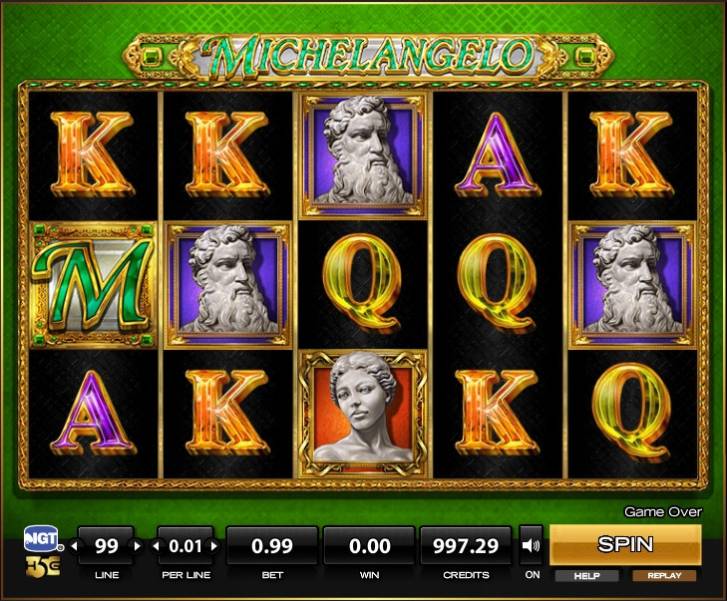 Безусловно, звезды кино и эстрады гораздо популярнее в мире азартных игр, чем корифеи искусств. Поэтому каждый видео-слот, посвященный великим творцам прошлого, неизменно привлекает внимание уже одним только выбором тематики. Соответственно, мы не могли обойти стороной разработку компании IGT (High 5 Games) под названием «Микеланджело». Этот бесплатный игровой автомат с необычными функциями геймплея и оригинальным интерфейсом предлагает нам вспомнить о творчестве одного из величайших мастеров эпохи Ренессанса.