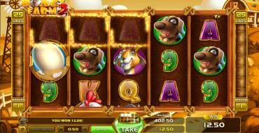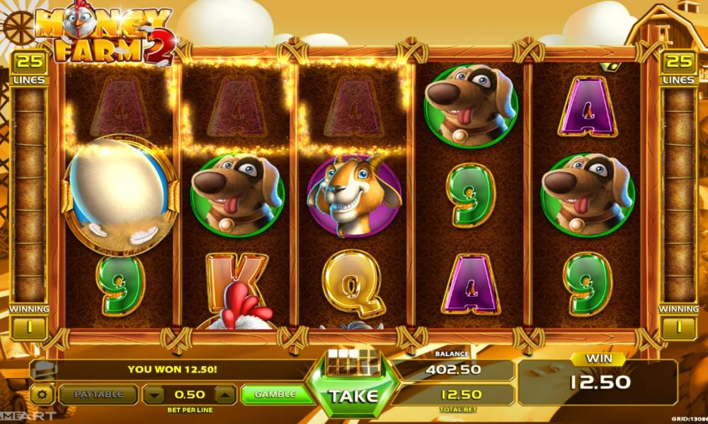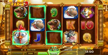 Игровой автомат Money Farm 2 состоит из пяти вращающихся барабанов с разнообразными картинками. На экране символы располагаются в три ряда. Равные ставки принимаются на двадцать пять фиксированных линий. В демо-версии от производителя на каждую разрешается ставить от 0.01 до 0.50 долларов (0.25 – 12.50 долларов на спин). В слот-машине «Денежная ферма 2» есть простые символы, джокеры, скаттеры, игра на удвоение, а также бонусный раунд в виде фри-спинов с несколькими экранами и дополнительными призами. Стандартные изображения формируют выигрышные цепочки лишь на задействованных полосах. Несколько элементов одного типа должны выстроиться слева направо, стартуя с первой колонки. Допускаются многочисленные выплаты в одном пуске барабанов, но с каждой позиции деньги начисляются только за наиболее ценный вариант. Выигрыши рассчитываются по ставке на линию и коэффициенту от х15 до х1000. Эти показатели умножаются друг на друга, а при нескольких комбинациях кредиты суммируются. Начисленные деньги можно забрать или поставить на кон в игре по равным шансам, где нужно угадывать цвет закрытой карты. Если вам это удастся, выплата удвоится. Иначе вы лишитесь ставки. Подряд можно действовать до пяти раз. Все исключения из правил Money Farm 2 и доступные бонусы рассматриваются далее в обзоре слота.