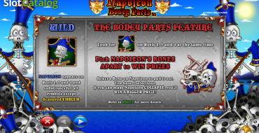 Napoleon Boney Parts привлекает внимание забавным воплощением темы ходячих скелетов, положенной на историческую основу. Бонусный раунд работает в юмористическом ключе, действие сопровождается забавной анимацией и соответствующими звуками. Игра дает шансы получить крупную сумму, хотя в основном выпадают небольшие призы. Видеослот прекрасно подойдет новичкам и тем гемблерам, которые не любят сильно рисковать своими финансами.