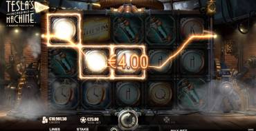 Видеослот «Невероятная машина Николы Теслы» - это пятибарабанная игра с двадцатью пятью фиксированными линиями. Иконки располагаются на основном экране в три ряда.