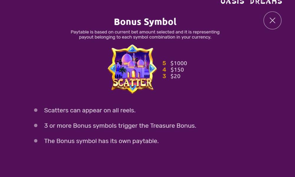 Слот Oasis Dreams с высоким RTP и средней волатильностью идеально подойдет для тех, кто ценит стабильность выигрышей и увлекательный игровой процесс.