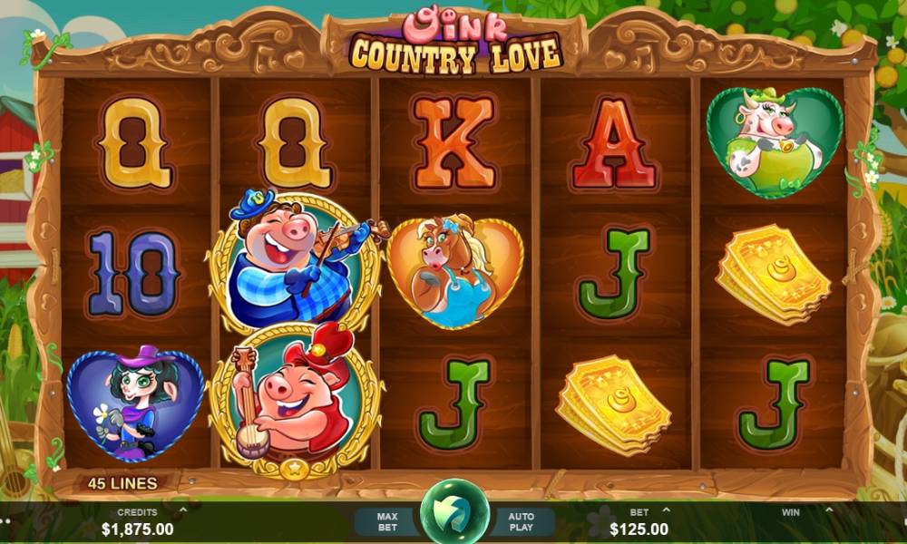 Обитателей фермы, на которой происходит действие видео-слота Oink Country Love, охватили романтические настроения. Коровы, лошади, овцы и куры принарядились, накрасились и бросают кокетливые взгляды по сторонам. А виной тому парочка влюбленных поросят, добивающихся расположения очаровательной свинки, общепризнанной местной королевы красоты.