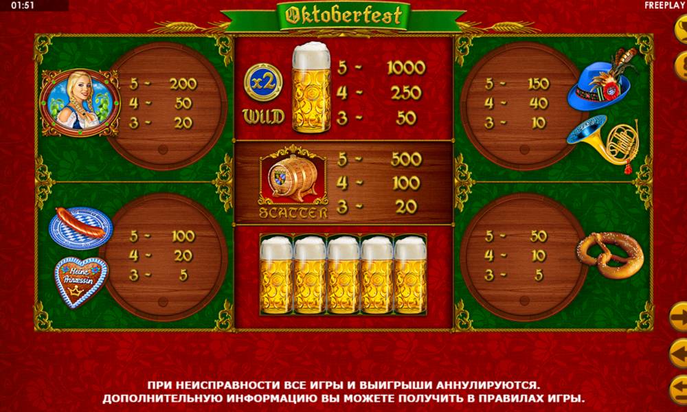 На нашем сайте вы можете опробовать слот Oktoberfest от провайдера Amatic Industries совершенно бесплатно, просто запустив демо-режим. Игра в нем ведется на условные деньги, поэтому вы ничем не рискуете.