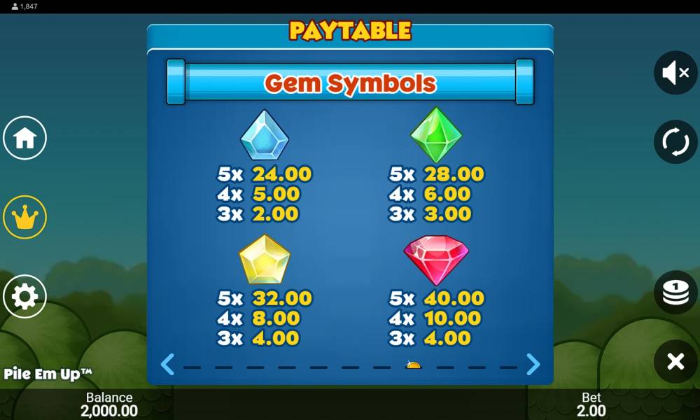 Мобильная версия у Pile ‘Em Up адаптирована для Android и iOS. Любители играть с телефонов и планшетов должны ее оценить: благодаря адаптации для маленьких экранов слот быстро запустится, его интерфейс полностью и правильно отобразится, а барабаны при вращении не будут тормозить. Даже если у вас старый или бюджетный гаджет, играть можно будет без проблем.