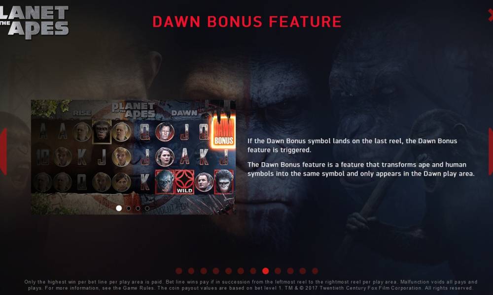 О бесплатных спинах Rise Free Spins и Dawn Free Spins рассказывалось выше в обзоре Planet of the Apes slot.