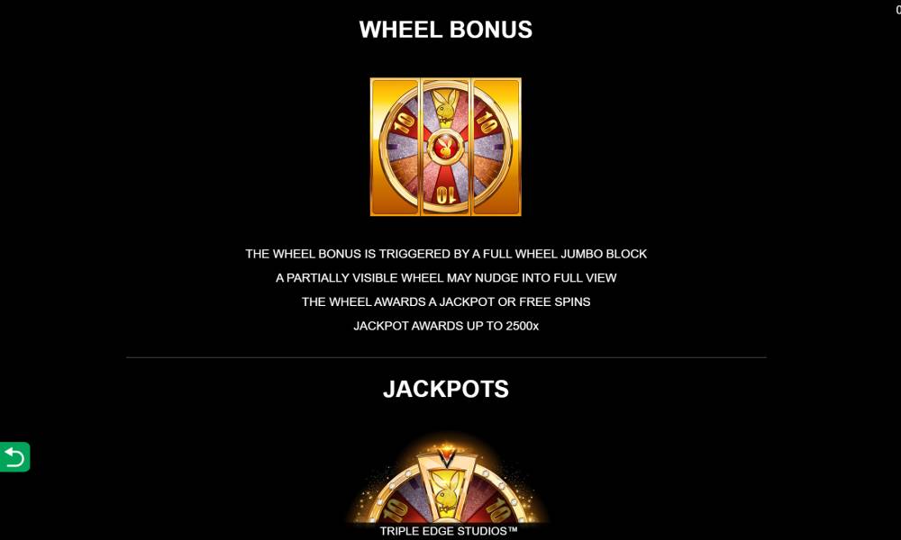 Прогрессивные джекпоты Microgaming или Triple Edge Studios в данной модели не разыгрываются. Пользователи, играющие в Playboy Gold Jackpots на реальные деньги, могут претендовать на один из четырёх фиксированных джекпотов, представленных на бонусном колесе.