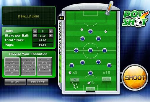 Цель игры в Pot Shot заключается в том, чтобы забить как можно больше голов в трое ворот, расположенных в нижней части экрана. Выплаты за каждый гол производятся по коэффициентам, изображенным над воротами (х5, х10, х15, х20 и х25).