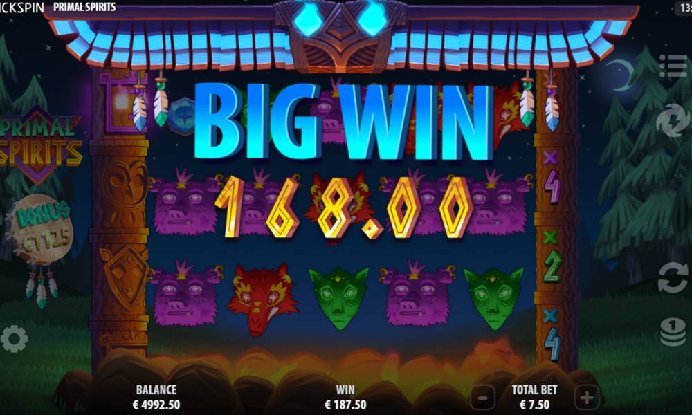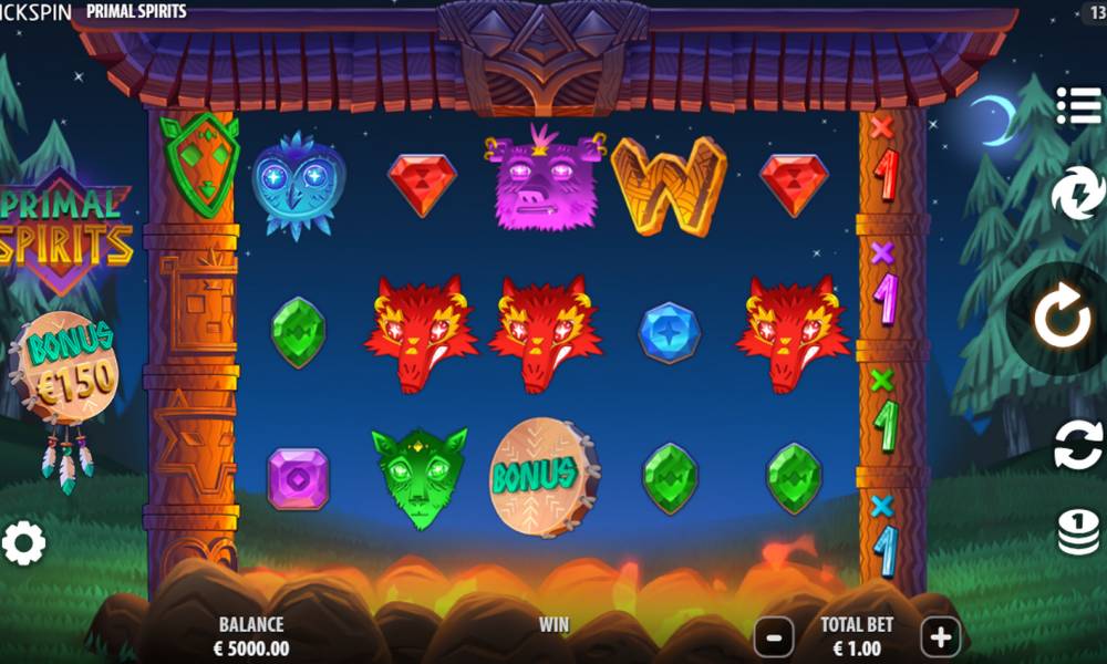 Видеослот Primal Spirits от Quickspin наполнен магией и мистикой, ведь все действия в нем основаны на верованиях индейцев, которые поклонялись определенному тотемному животному. Игровой процесс зависит от благосклонности тотемов, установленных по краям поля. Духи животных способны превратить камни в высокооплачиваемые символы, увеличить множитель и щедро одарить бесплатными вращениями для получения огромного выигрыша, при этом максимум может достичь х8 469 к действующей ставке.