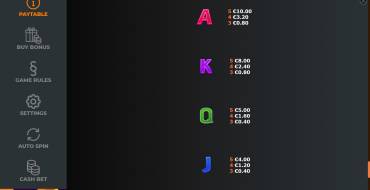 Интерфейс слота элементарный. В нижней части экрана вы найдете кнопки вызова главного меню, регулирования звука, выбора ставки. Далее располагаются кнопки активации быстрых вращений, автоматической игры, а также запуска простого спина.