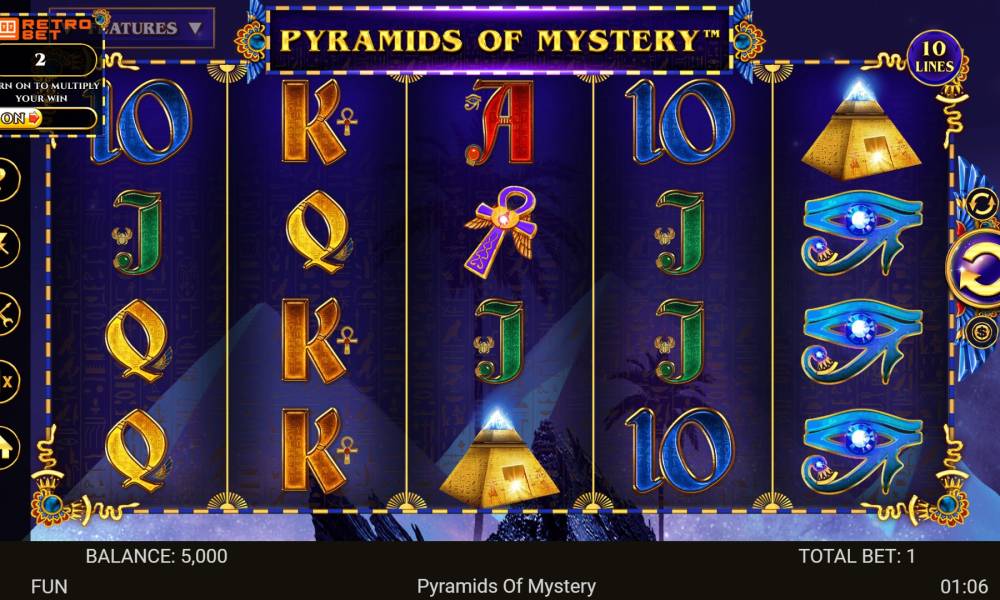 Игровой автомат Pyramids of Mystery от провайдера Spinomenal посвящен египетской тематике. Если вам повезет, то в этом слоте вы сможете выиграть крупные призы, вплоть до 5000 ставок.