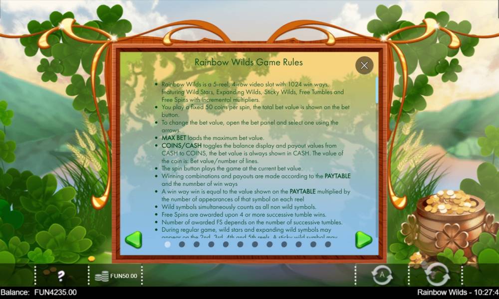 Компания Iron Dog Studios выпустила очень красивый игровой автомат Rainbow Wilds, посвященный старинным ирландским легендам о лепреконах. Это модель с огромным количеством выплат, разными типами джокеров, а также дополнительными призовыми функциями. Читайте обзор, разбирайтесь в правилах и тестируйте новинку.