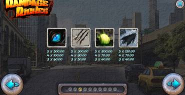 Это автомат о доисторических чудовищах, наделенных сверхъестественными возможностями. Так что все картинки на экране непосредственно связаны с этой сюжетной линией. Вы увидите следы монстров, их глаза, когти и тому подобные элементы. Еще на барабанах изображены номиналы карт от десятки до туза.