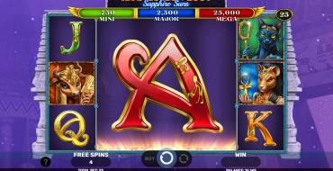 Игровое поле в Ra’s Golden Loot – Sapphire Suns состоит из 5 барабанов с 3 ячейками на каждом. Для построения комбинаций используется 25 линий выплат. Для получения минимального выигрыша требуется расположение минимум 3 одинаковых символов (можно с использованием знака Wild) от левого края поля к правому. Ставка выбирается из диапазона от 0.25 до 250 евро, с максимальным увеличением в х1500. Bсего задействовано 3 специальных и 8 рядовых cимволов . Бонусы предлагают фриспины с гигантским символом и респины системы Hold and Win.