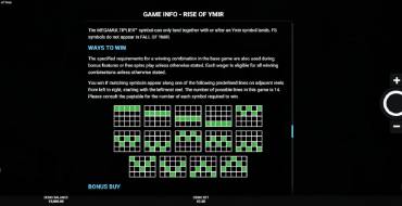 Слот Rise of Ymir имеет стандартное поле с пятью барабанами, четырьмя рядами символов и 14 линиями, оплачиваемыми слева направо. Диапазон ставок достаточно широкий — от 0.1 у.е до 100 у.е.