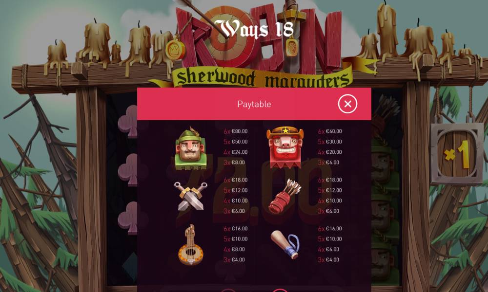 Robin - Sherwood Marauders — это увлекательный онлайн слот с простыми и понятными правилами. Игровое поле состоит из 6 барабанов и 4 рядов, что создает крупную сетку для игры. Здесь используется 4096 способов формирования выигрышных комбинаций, которые составляются из одинаковых символов, выпадающих на соседних барабанах. Ставки за одно вращение варьируются от 10 до 5000 монет, что делает игру доступной для игроков с разным бюджетом.