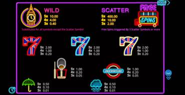 Интерфейс слота оформлен в неоновом стиле, но с минималистичной рисовкой. Элементов очень много, не все из них имеют объясняющие подписи. Над полем находятся 5 кнопок. Слева направо — таблица выплат, информация с правилами и описанием функций, включение-выключение звука, регулировка громкости и включение-выключение режима быстрых вращений. Слева по центру есть кнопка для увеличения и уменьшения количества линий. Если нажать на количество линий — их схемы отобразятся прямо на поле. Под полем находятся (слева направо): выбор ставки, баланс, автоспин, ручной запуск, установка максимальной ставки, кнопка для запуска риск-раунда и окно Win, где отображается полученная выплата. На основе своего опыта игры в этот слот я рекомендую другим гемблерам: