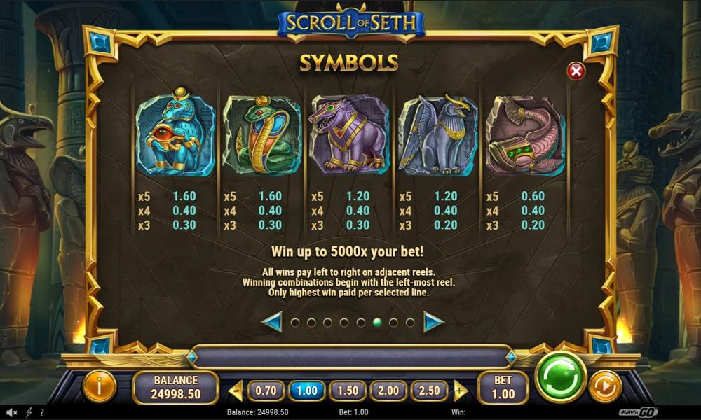 Слот Scroll of Seth разработки Play'n Go представляет собой крайне интересную реализацию древнеегипетской тематики. В игре используются интересные и оригинальные механики, качественная бонусная система и отличная графика.