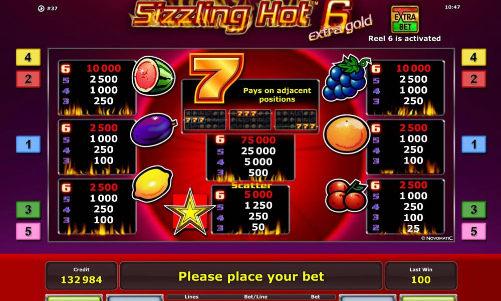 В Sizzling Hot 6 Extra Gold не разыгрывается накопительный джекпот Novomatic.