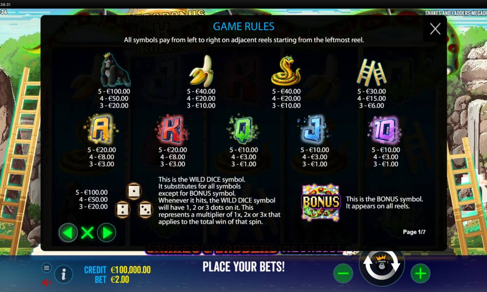 Как играть в автомат Snakes and Ladders Megadice? (Интерфейс)