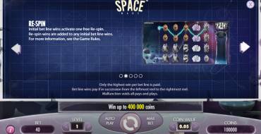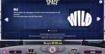 Space Wars – пятибарабанный видео-слот, на экране которого символы выстраиваются в четыре ряда. Играть на игровом автомате можно только по сорока линиям. На каждую из них принимается ставка в одну – десять монет номиналом от одного до пятидесяти центов. Это означает, что на спин хайроллеры смогут поставить не более двухсот евро.