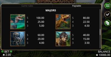 Игровой автомат Spinosaurus от провайдера Booming Games посвящен динозаврам. Если вам повезет, то в этом слоте вы сможете выиграть крупные призы, вплоть до 2500 ставок. Также в слоте есть режим бесплатных вращений.