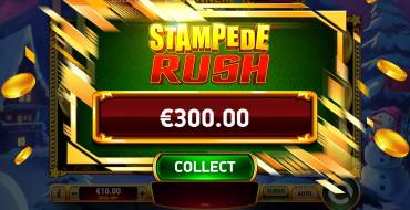 Stampede Rush. Бонус-раунд, который запускается при появлении 6+ Prize. Эти монеты переносятся в мини-игру. В ней запускается счетчик из 3 бесплатных респинов, а все Coin (и те, которые запустили раунд, и те, которые будут выпадать в нем) получают липкий статус и держатся на своих местах до конца раунда. Если при вращении хотя бы 1 ячейка занимается новым символом Coin, то счетчик снова возвращается на 3. Раунд заканчивается 2 способами: за 3 респина не выпало ни 1 новой Coin (в этом случае выплата дается за те монеты, которые выстроились в целый ряд, если это произошло), либо когда все ячейки будут заняты Coin (выплаты даются за все их номиналы).